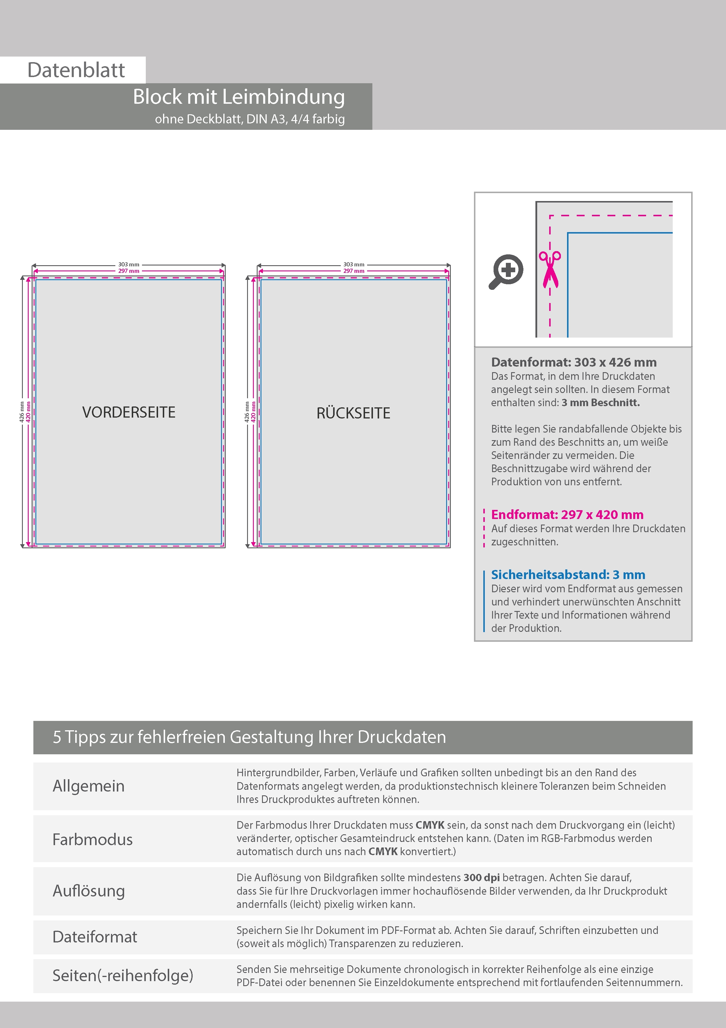 Block mit Leimbindung, DIN A3, 25 Blatt, 4/4 farbig beidseitig bedruckt