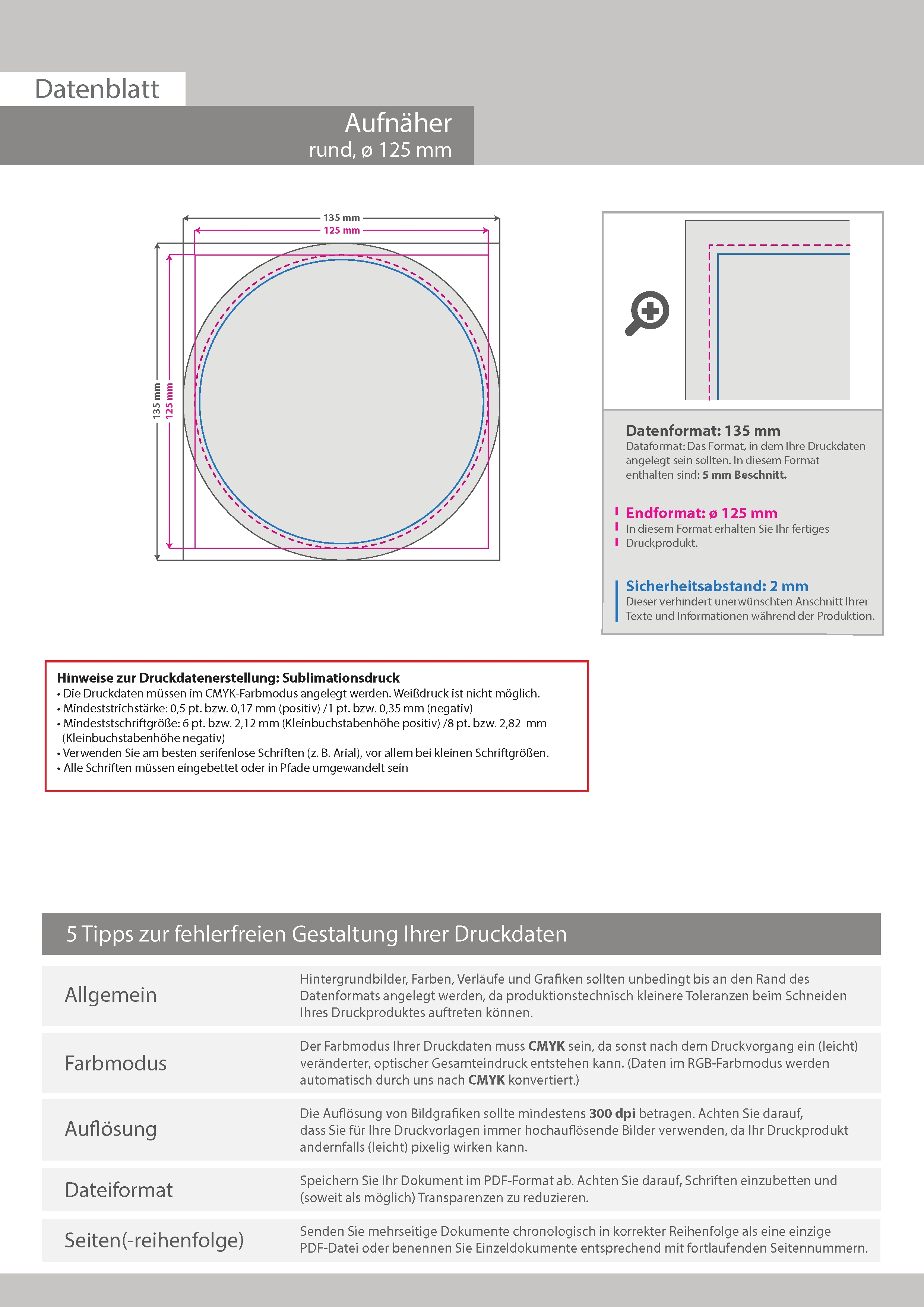Hochwertiger Aufnäher rund ø 12,5 cm, mit Druck