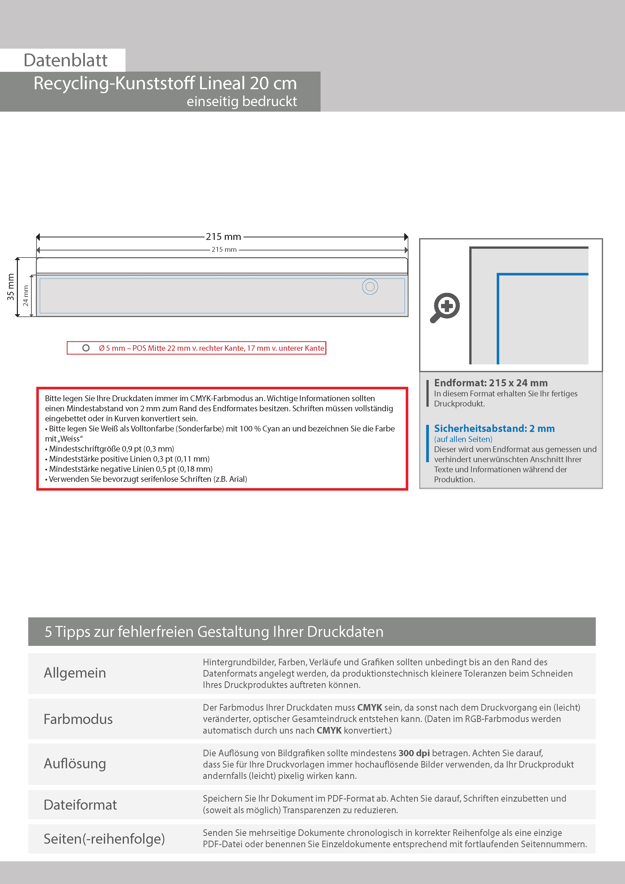 Hochwertiges Recycling-Kunststoff Lineal 20cm, 4-farbig, einseitig bedruckt