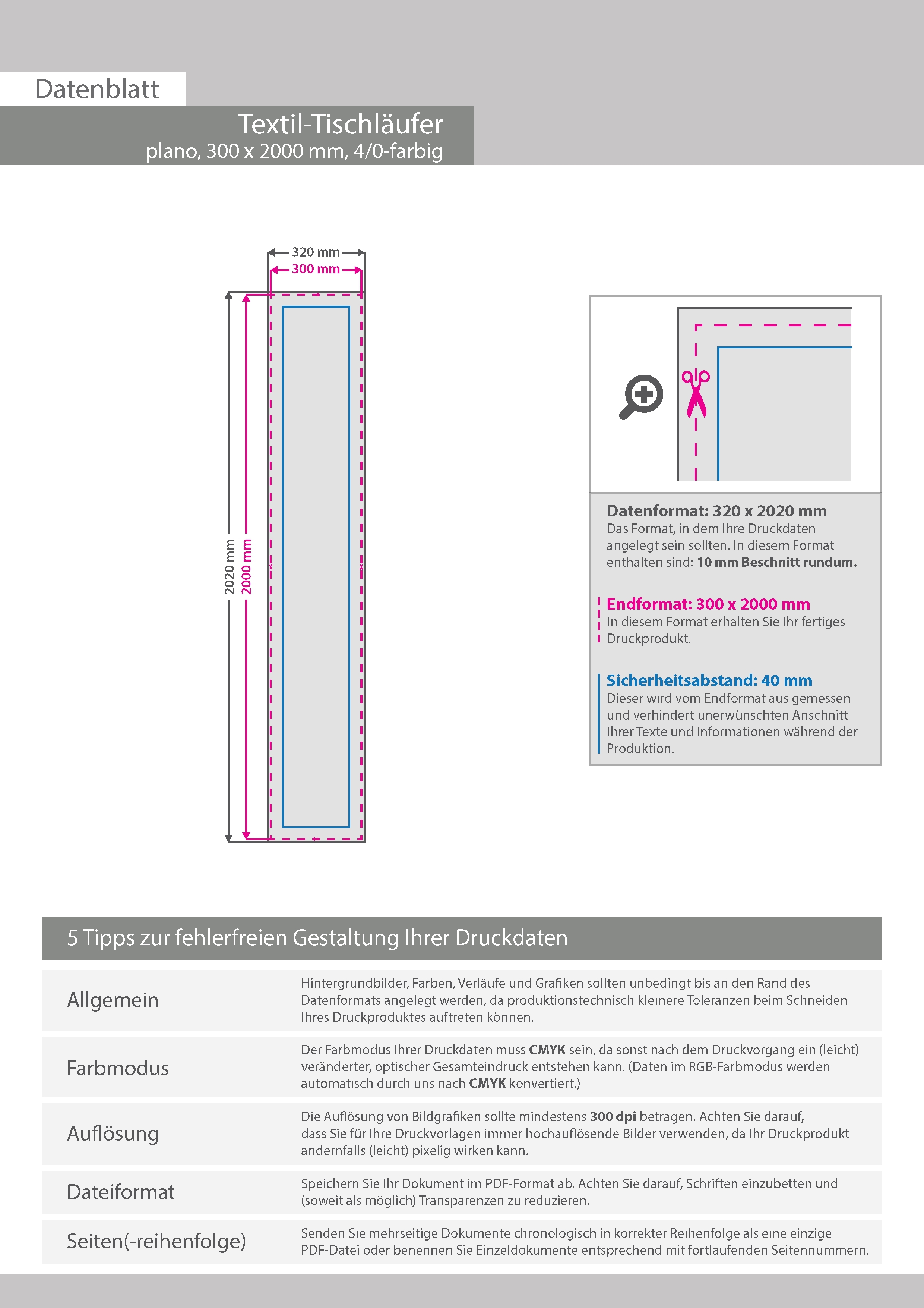 Textil-Tischläufer 30 x 200 cm, 4/0-farbig bedruckt, plano