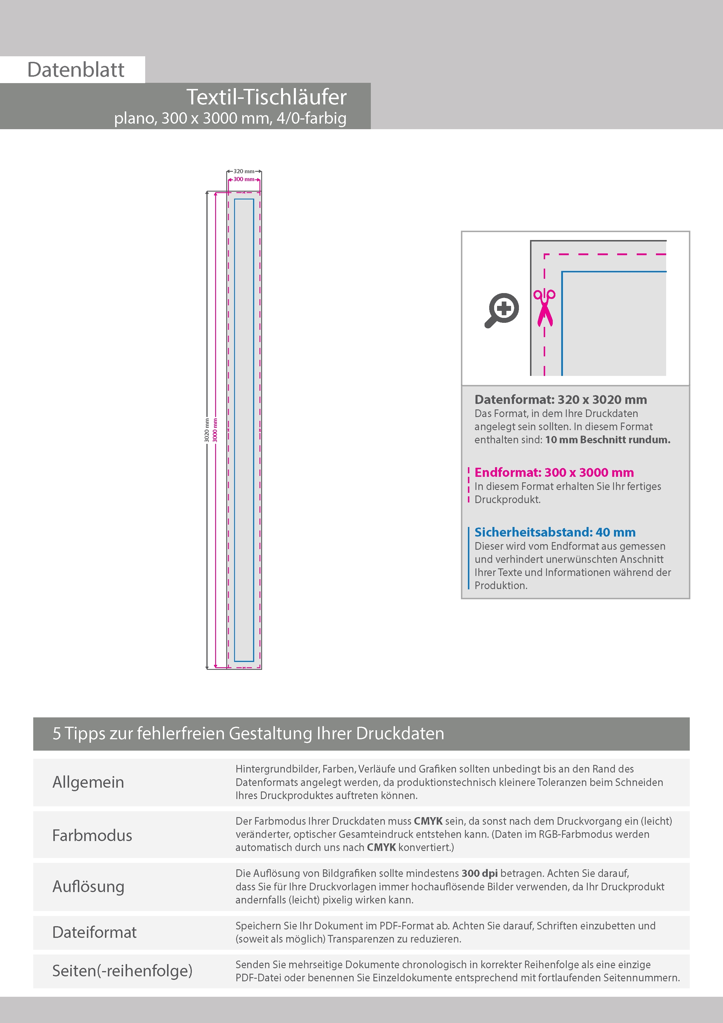 Textil-Tischläufer 30 x 300 cm, 4/0-farbig bedruckt, plano