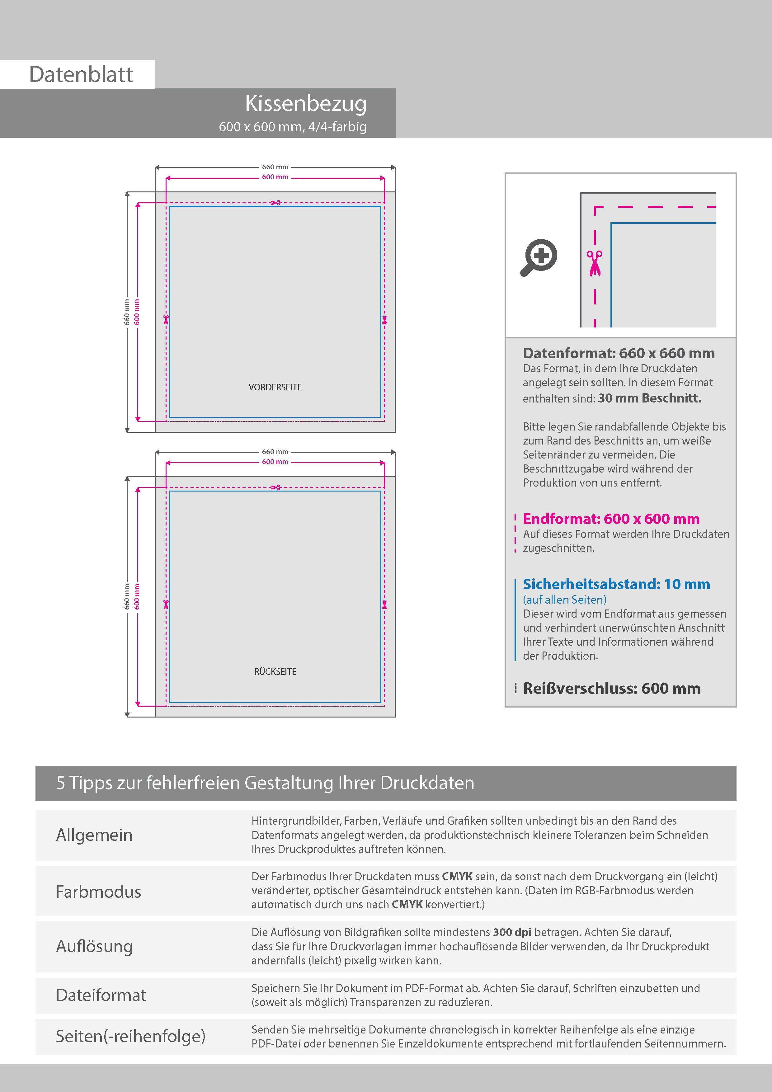 Kissenbezug 60 x 60 cm, beidseitig bedruckt