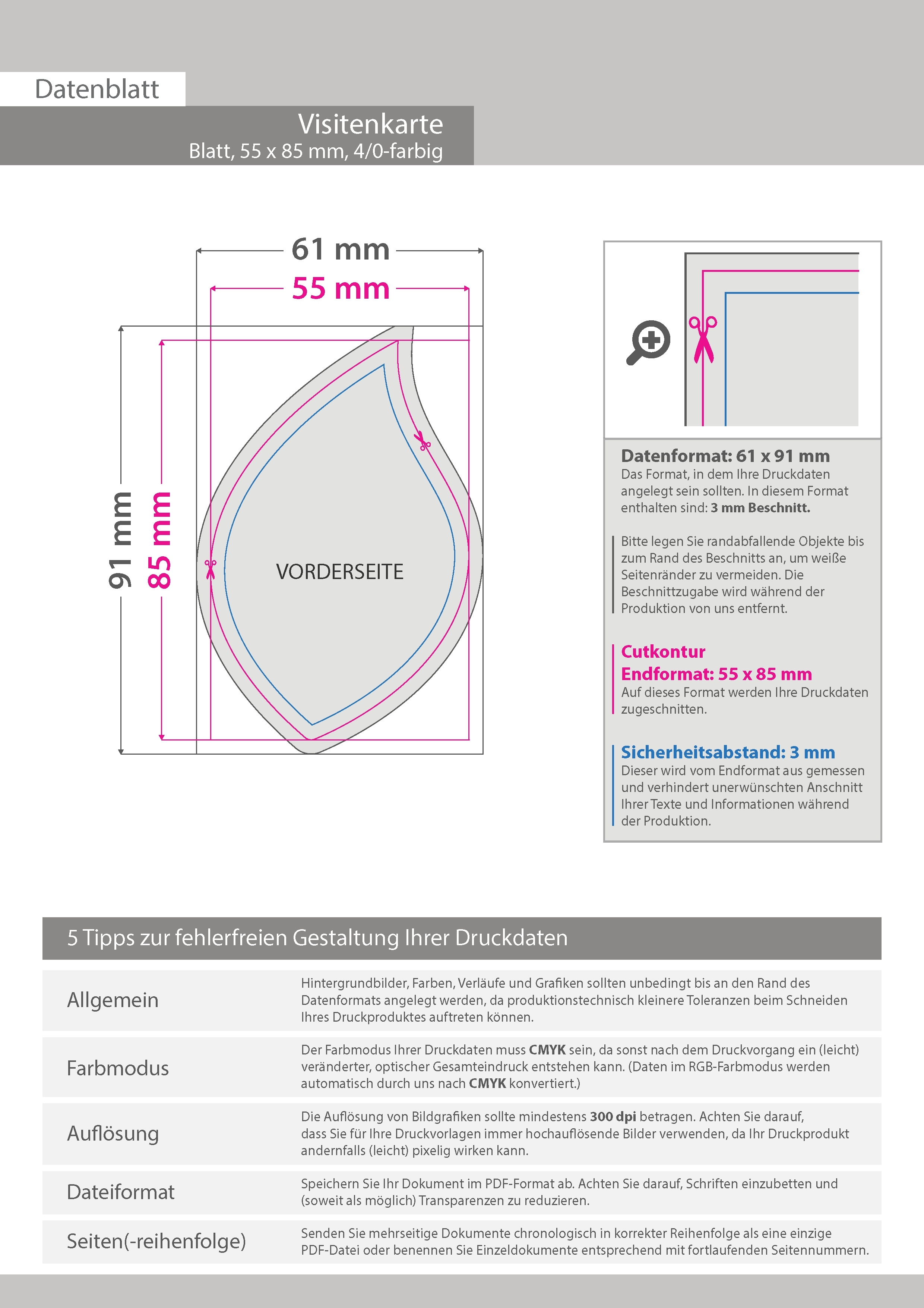 Visitenkarte Blatt, 55 x 85 mm, 1-seitig, 4/0-farbig CMYK