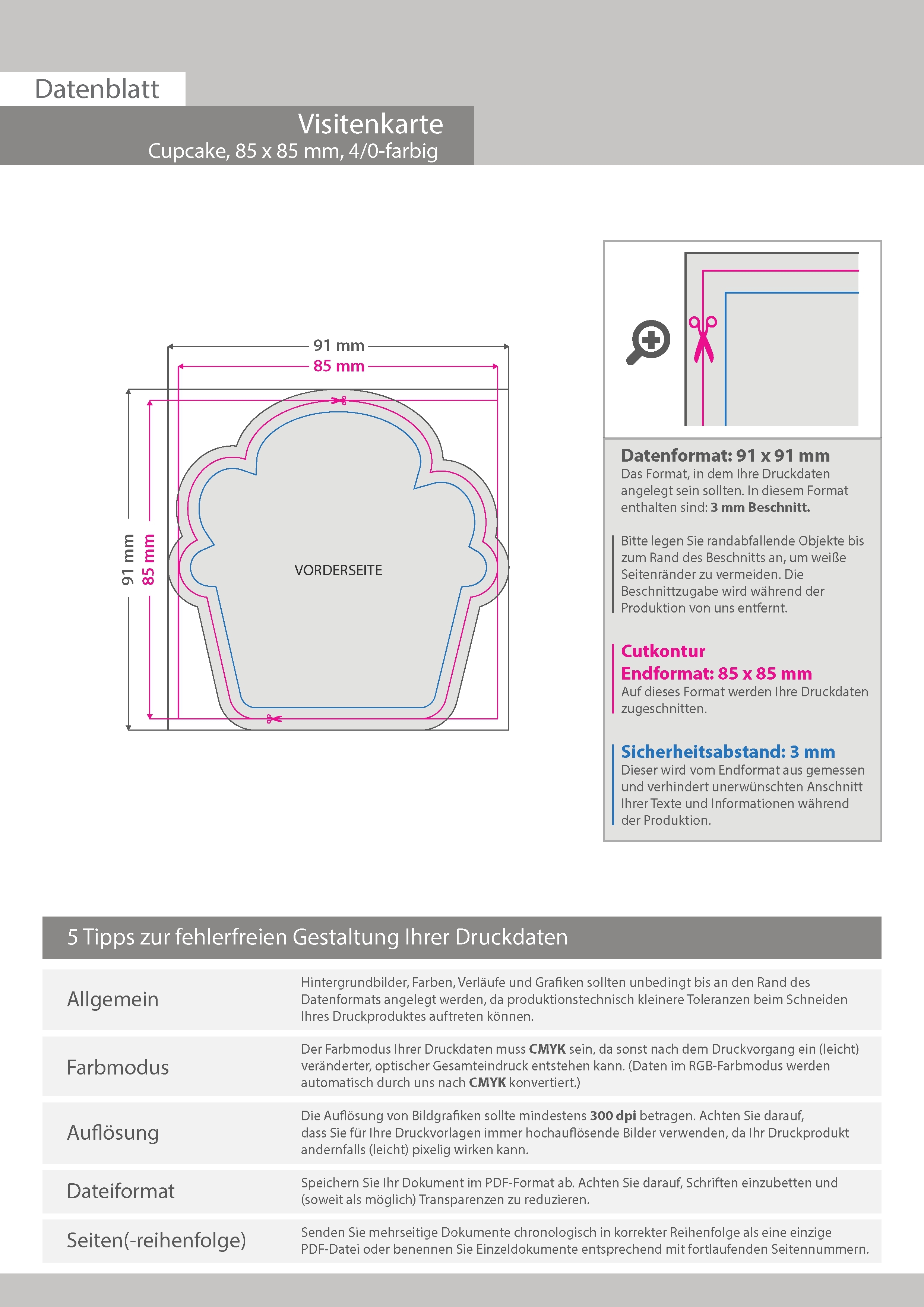 Visitenkarte Cupcake, 85 x 85 mm, 1-seitig, 4/0-farbig CMYK