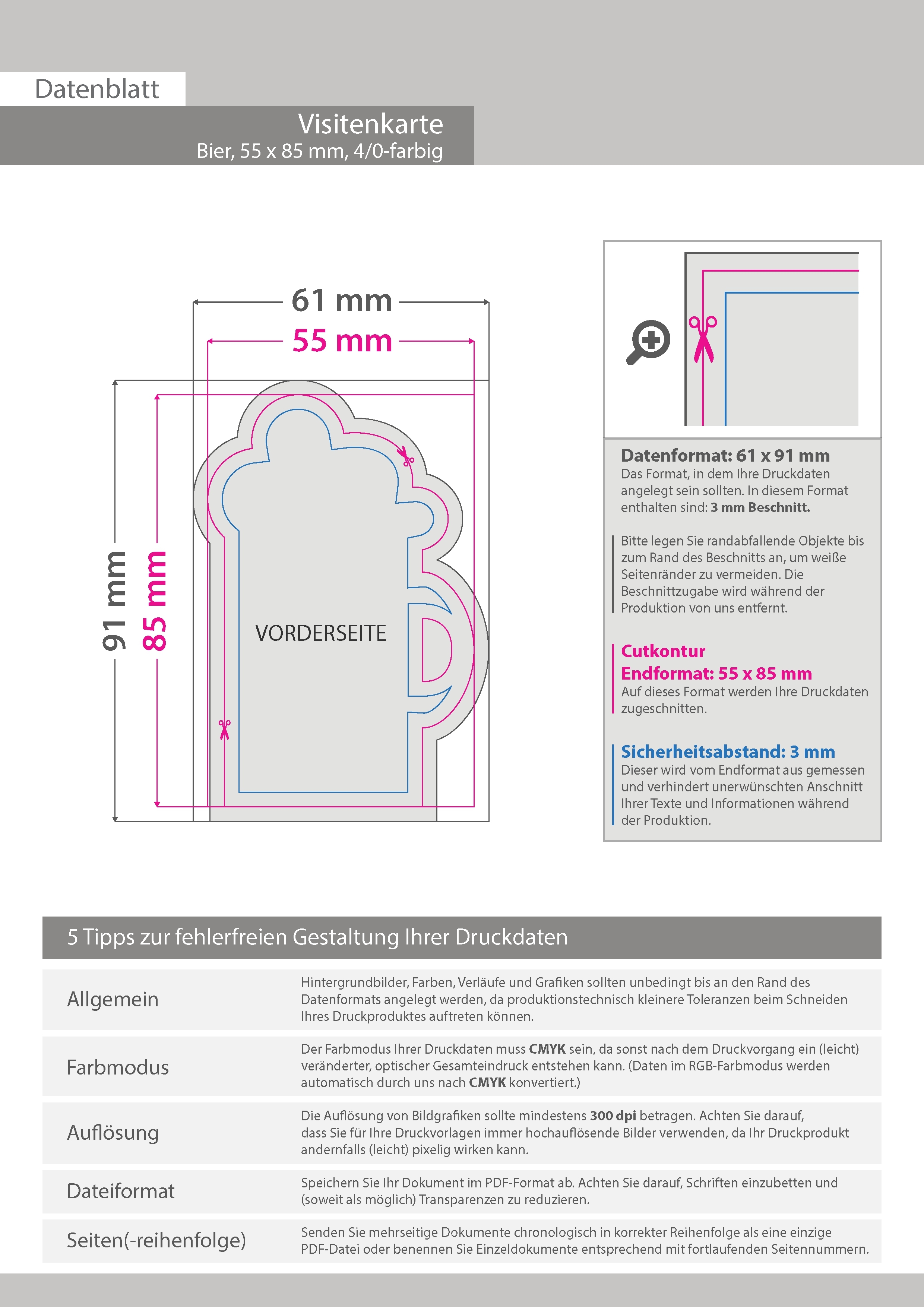Visitenkarte Bier, 55 x 85 mm, 1-seitig, 4/0-farbig CMYK
