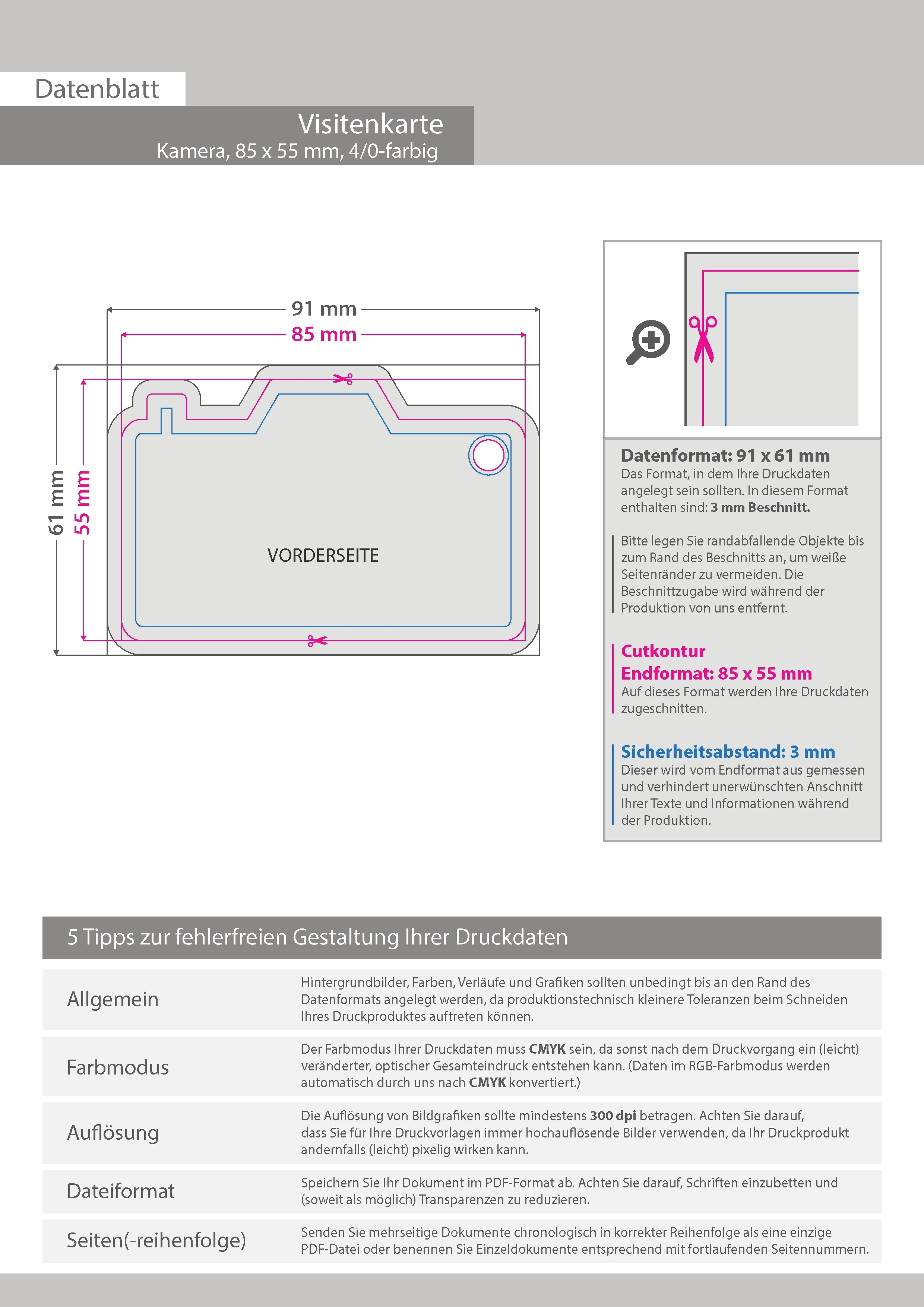 Visitenkarte Kamera, 85 x 55 mm, 1-seitig, 4/0-farbig CMYK